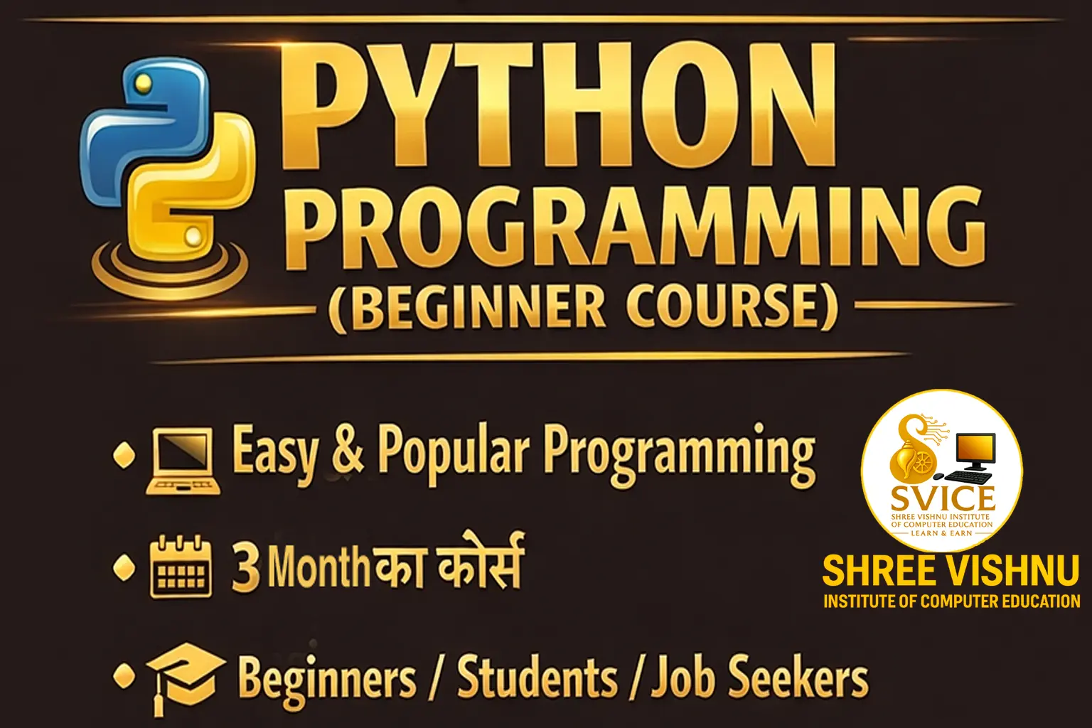 Welcome to Shree Vishnu Institute of Computer Education (SVICE) — a trusted destination for quality computer learning. Since our establishment, we have been dedicated to empowering students with practical skills, modern technology knowledge, and real-world confidence. At SVICE, we believe that computer education is not just about learning software; it’s about building a strong foundation for a successful future. Our curriculum is designed to match the latest industry standards, and our teaching approach focuses on concept clarity, practical training, and career-oriented development.